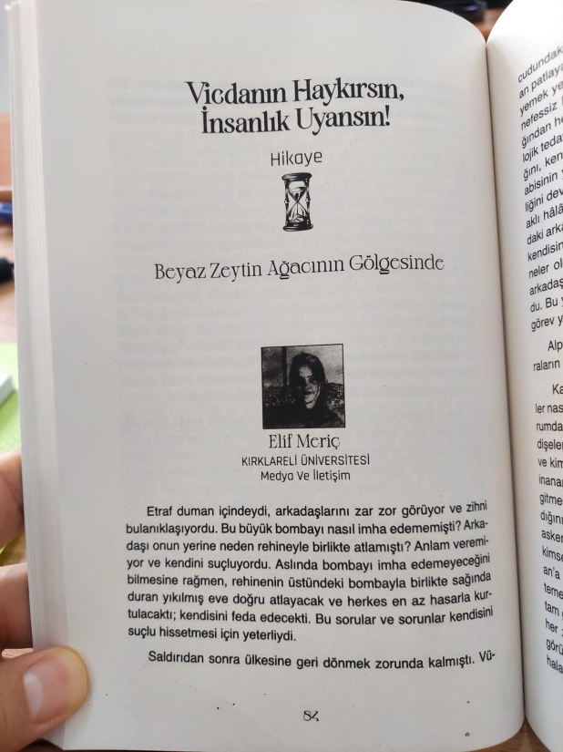 Yarışmaya, “Beyaz Zeytin Ağacının Gölgesinde” adlı öyküsüyle katılan Meriç, büyük bir başarı göstererek, İlk sıralarda yer aldı. Değerlendirme kurulu tarafından beğenilen eserlerin kitaplaştırıldığı yarışma kapsamında Meriç’in hikâyesi de “Vicdanın Haykırsın, İnsanlık Uyansın” adlı kitapta yer alarak okuyucularla buluştu.